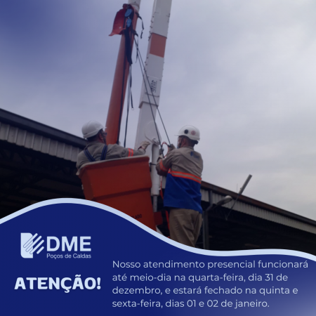 Nos dias 01 e 02 de janeiro, quinta e sexta-feira respectivamente, o atendimento presencial estará fechado.